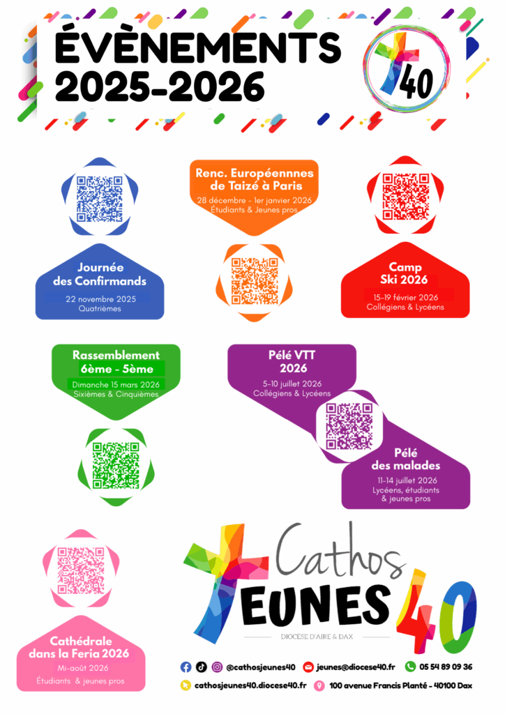 Ne ratez aucun événement de l’année grâce au programme de Cathosjeunes40, à diffuser largement !