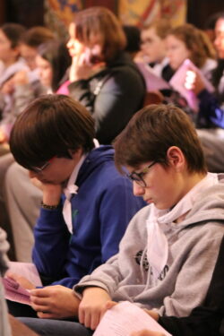 Les jeunes ont ensuite participé, en petits groupes d’une dizaine, à un jeu sur le Credo. Sur le modèle d’un jeu de l’oie, ils se sont challengés autour de questions portant sur les trois grands thèmes du Credo : le Père, le Fils (Jésus-Christ) et le Saint-Esprit.