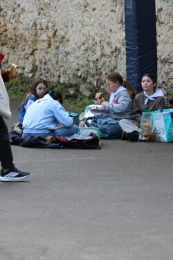 Suite à cette belle messe , l’heure du repas est arrivée. Les jeunes sont allés récupérer leurs sacs avant de s’installer au soleil pour partager leur pique-nique et profiter d’un temps très agréable, propice à quelques séances de bronzage pour certains.