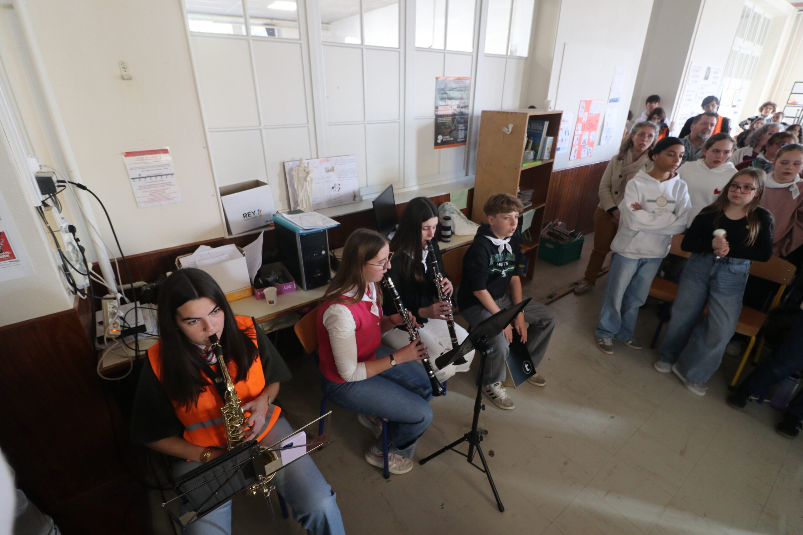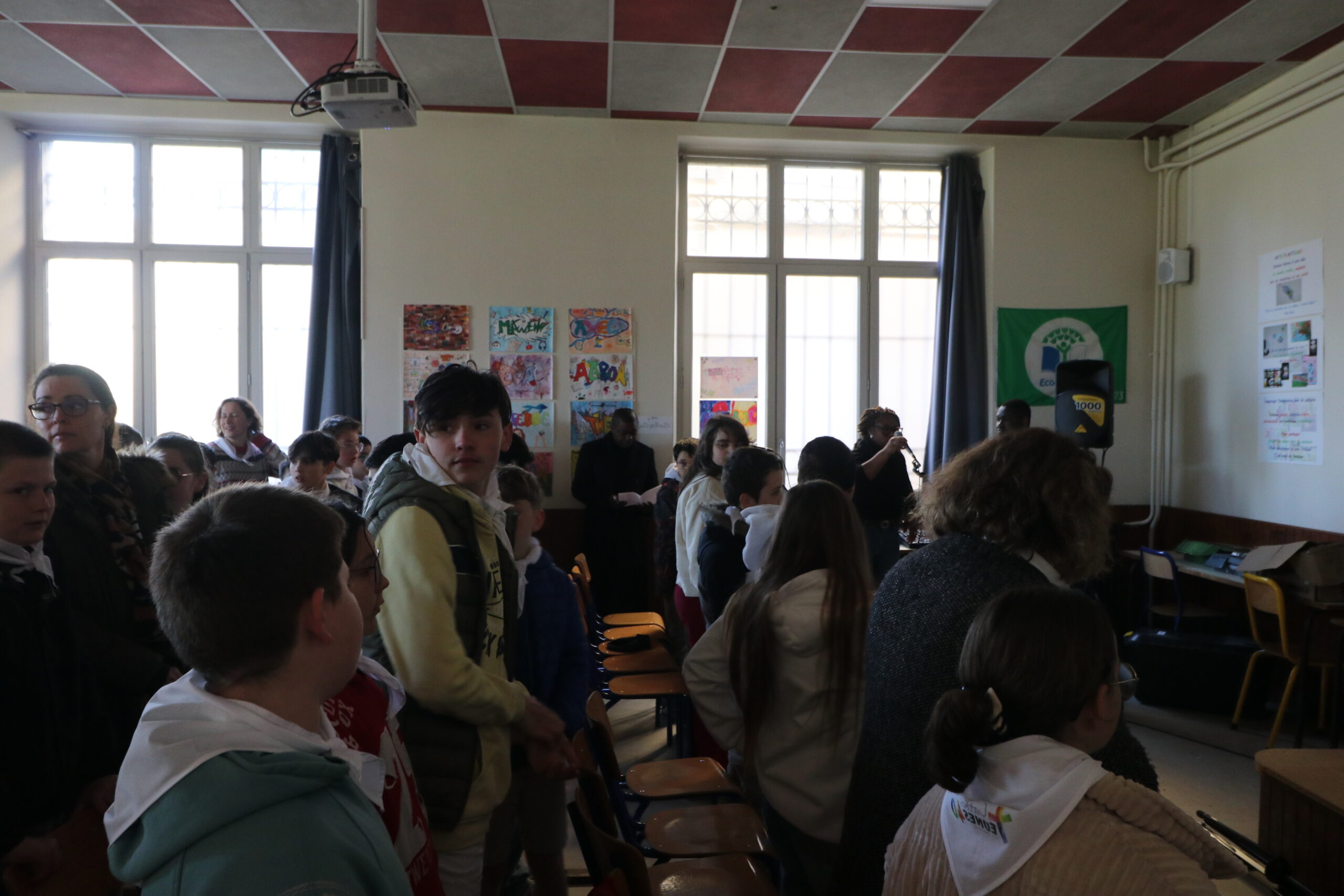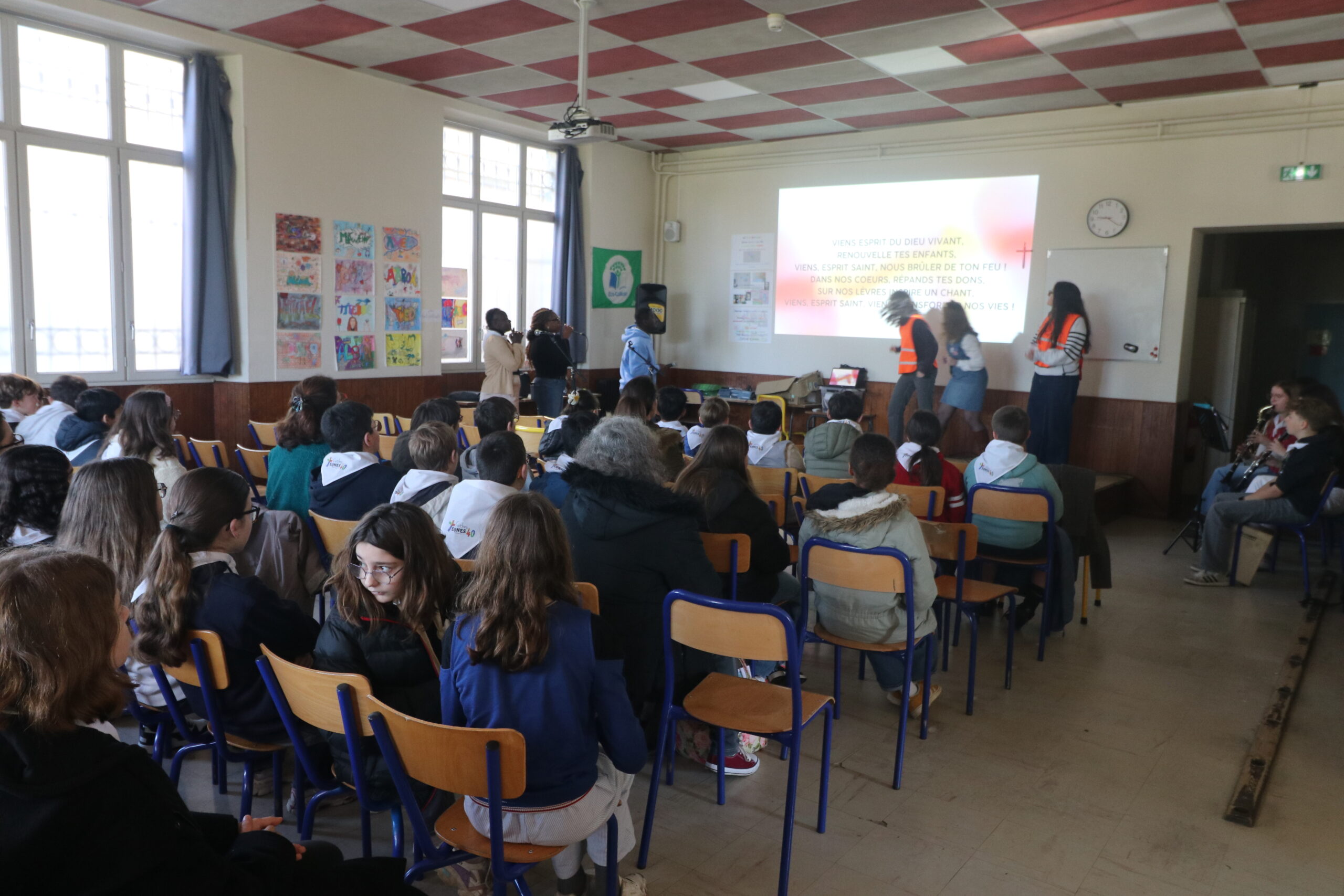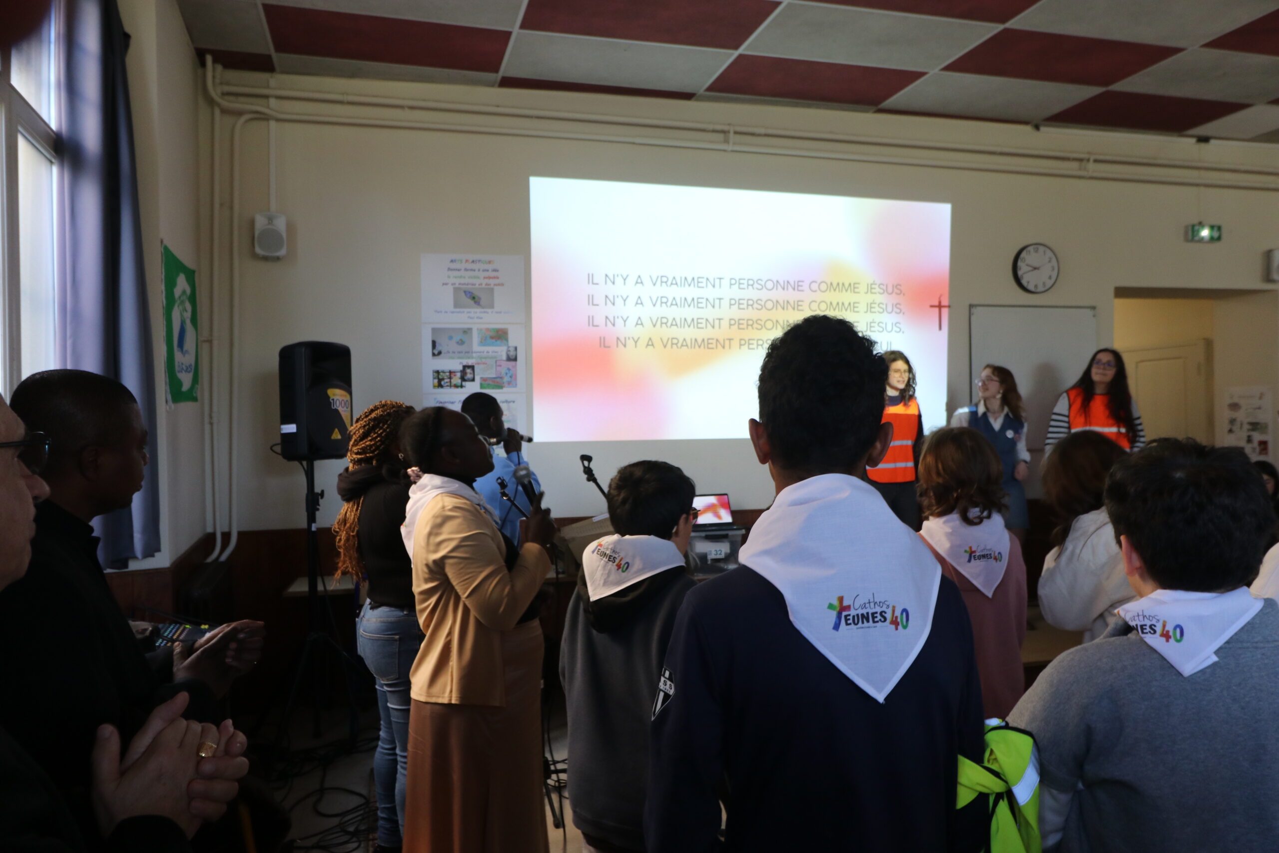 La journée a commencé par un accueil soigné : chaque jeune a reçu un foulard et a déposé son sac avant de participer à un temps de louange animé par nos chanteurs, musiciens et animatrices, qui ont su réveiller les plus endormis d’entre nous.