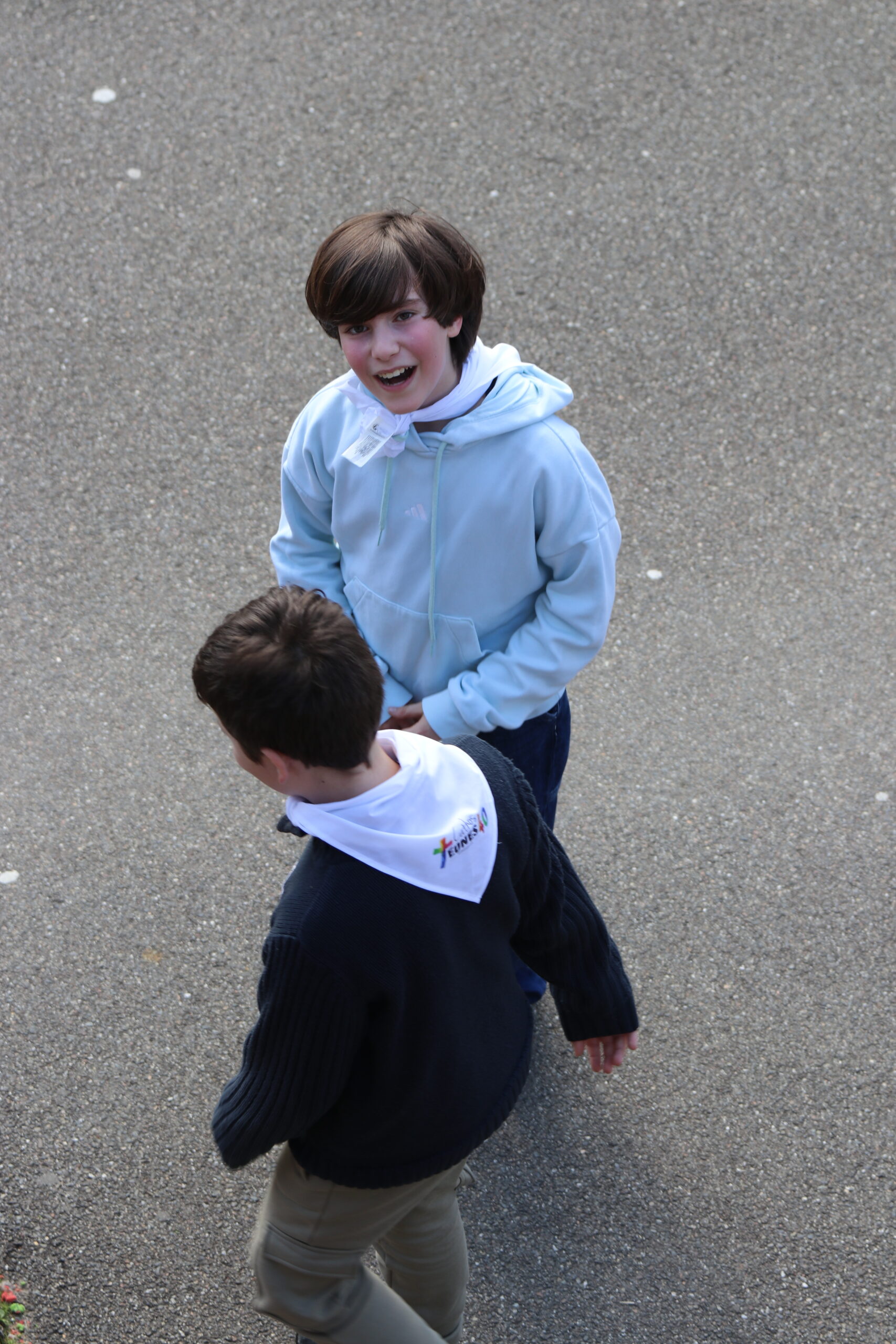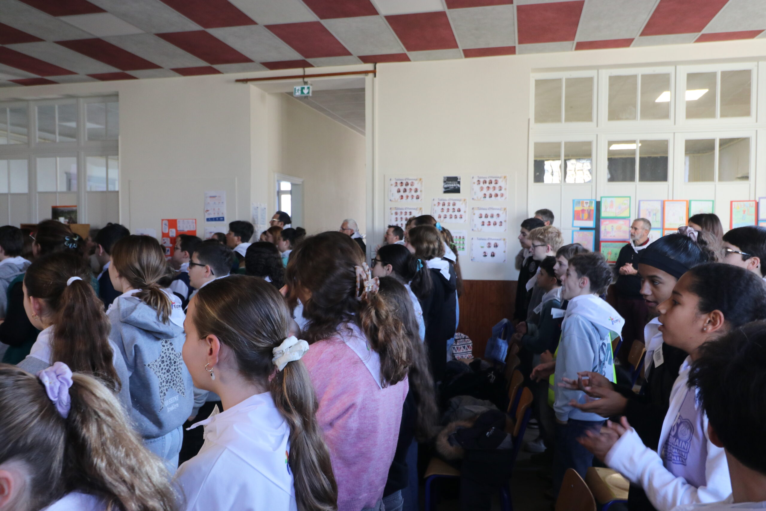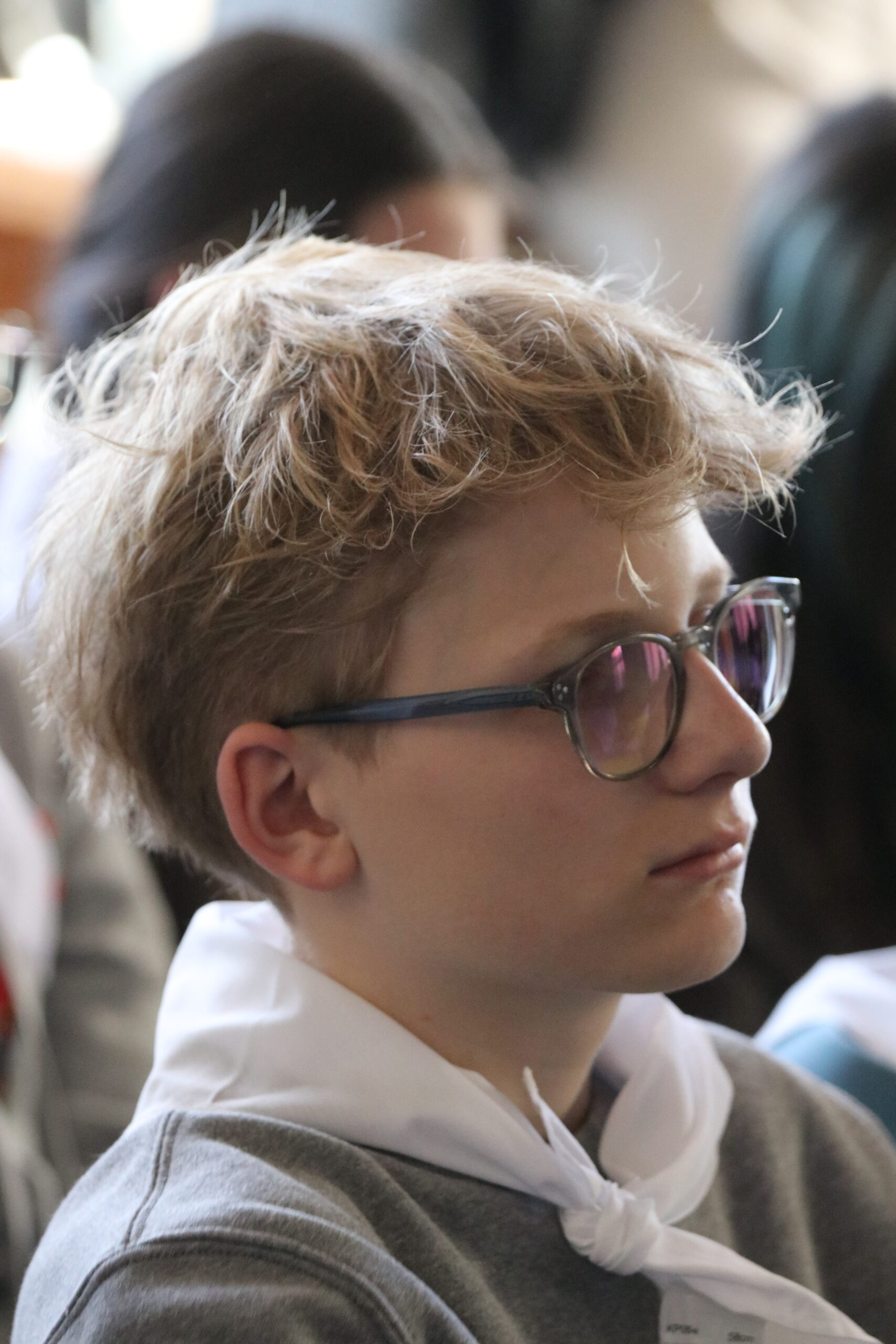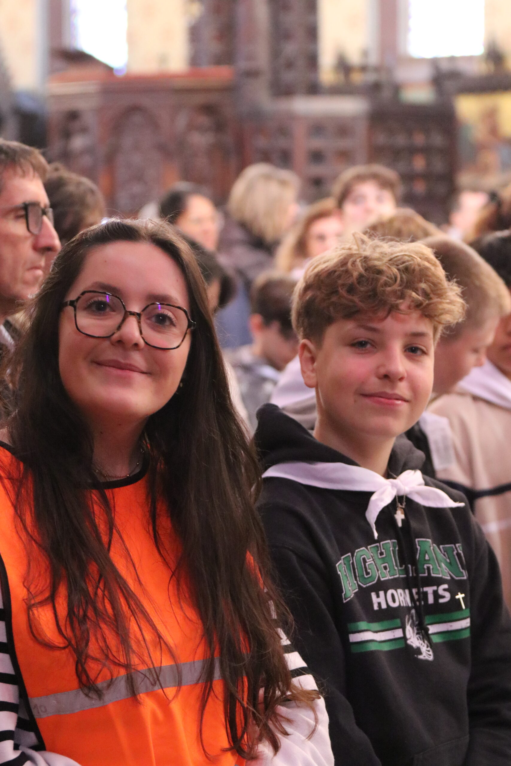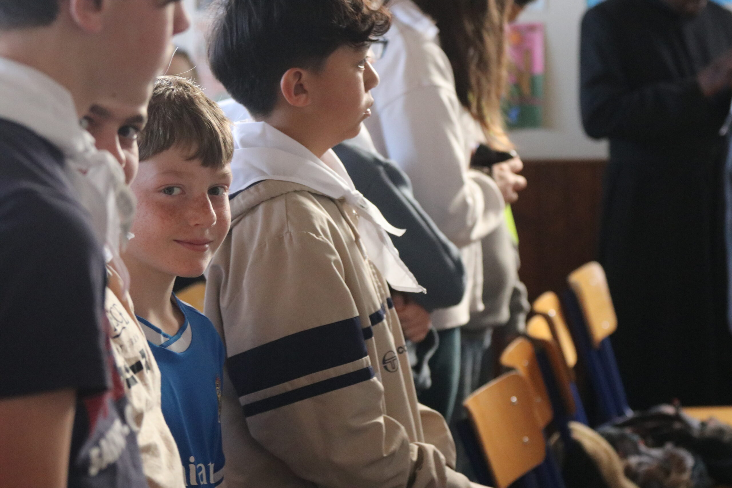 Mais toutes les bonnes choses ont une fin : nous sommes retournés en salle polyvalente pour chanter et danser avant de vivre un premier temps d’échange avec Monseigneur. Pendant 30 minutes, il a répondu à plusieurs questions sur le Credo : le Père, le Fils, le Saint-Esprit et l’Église. (Pour les questions restées sans réponse, un peu de patience : les réponses de Monseigneur Souchu seront prochainement publiées en vidéo sur notre site et nos réseaux sociaux.)