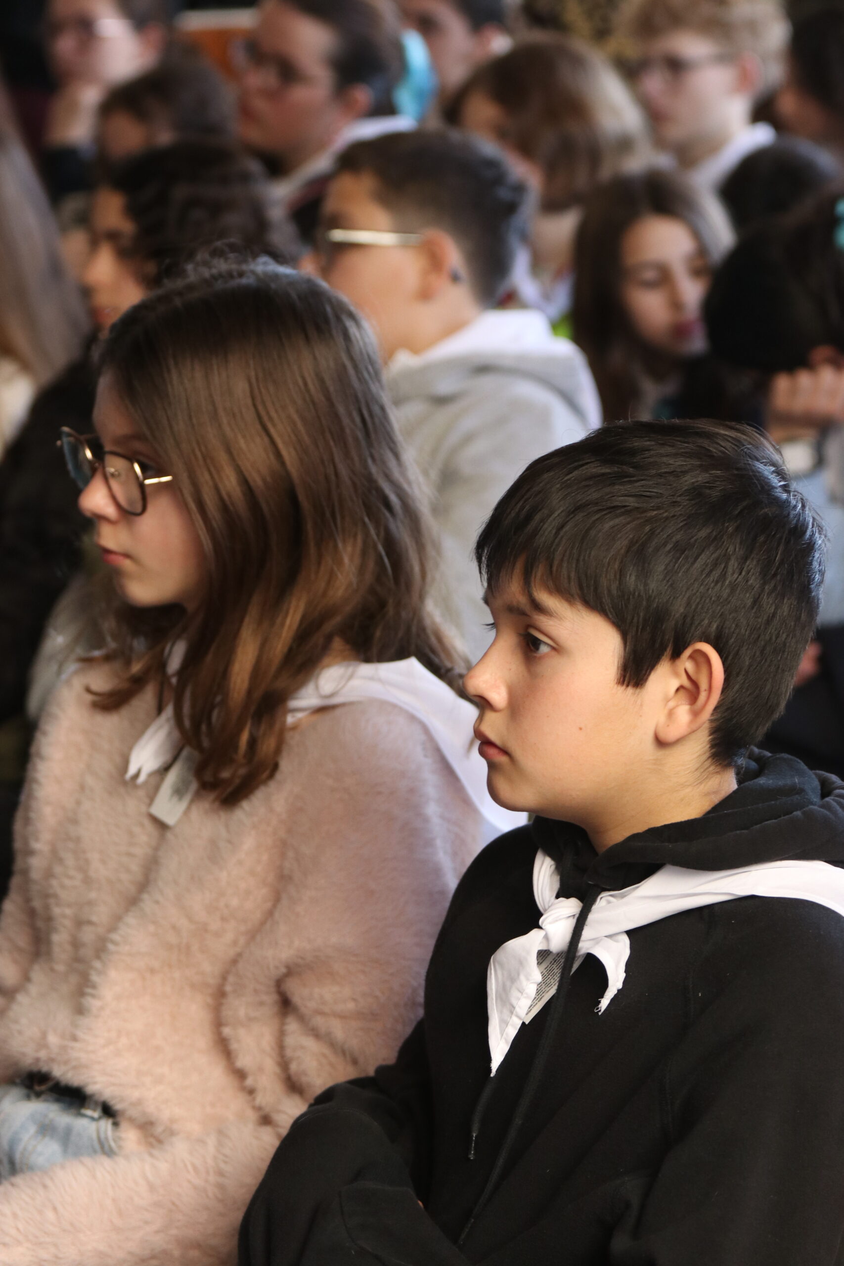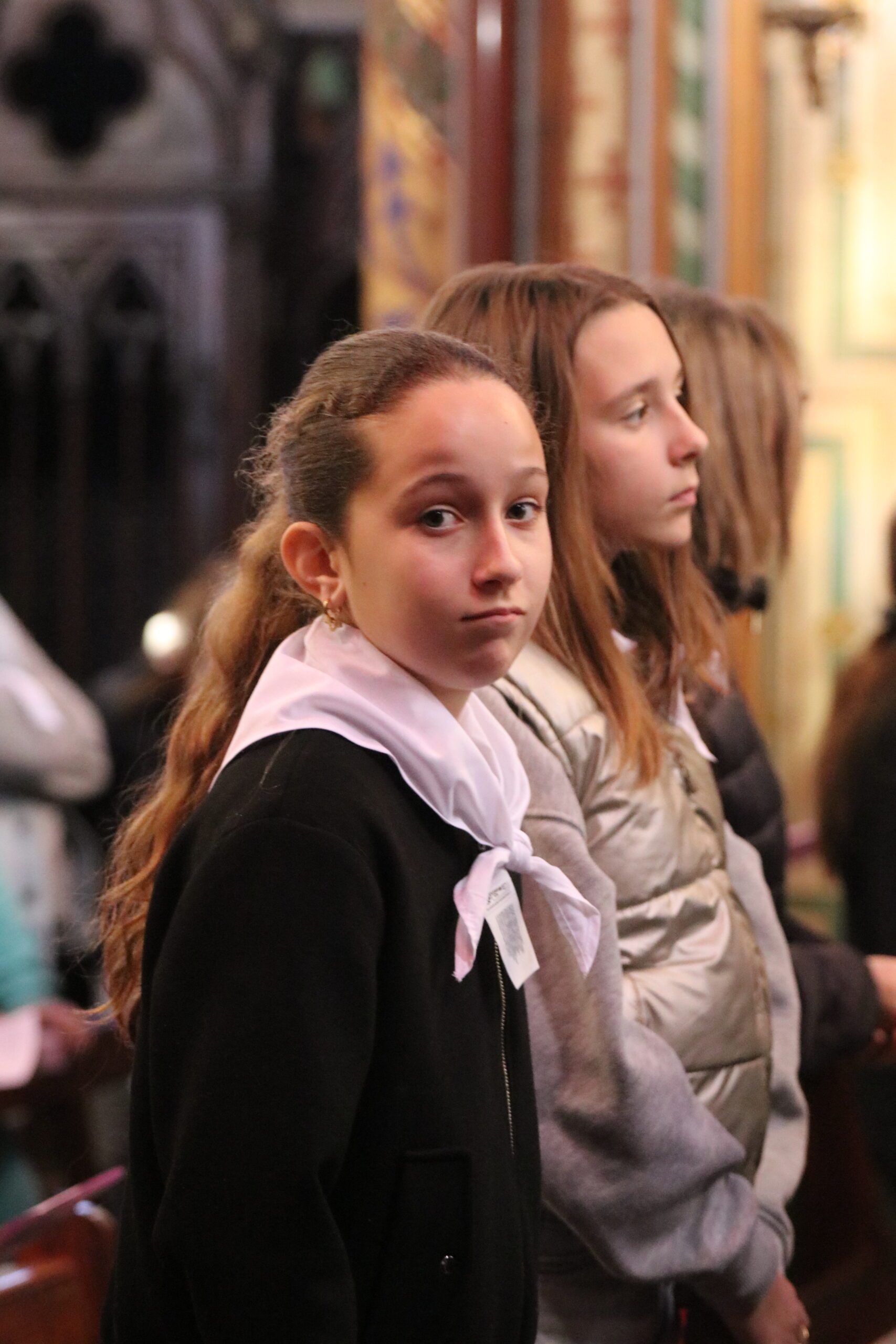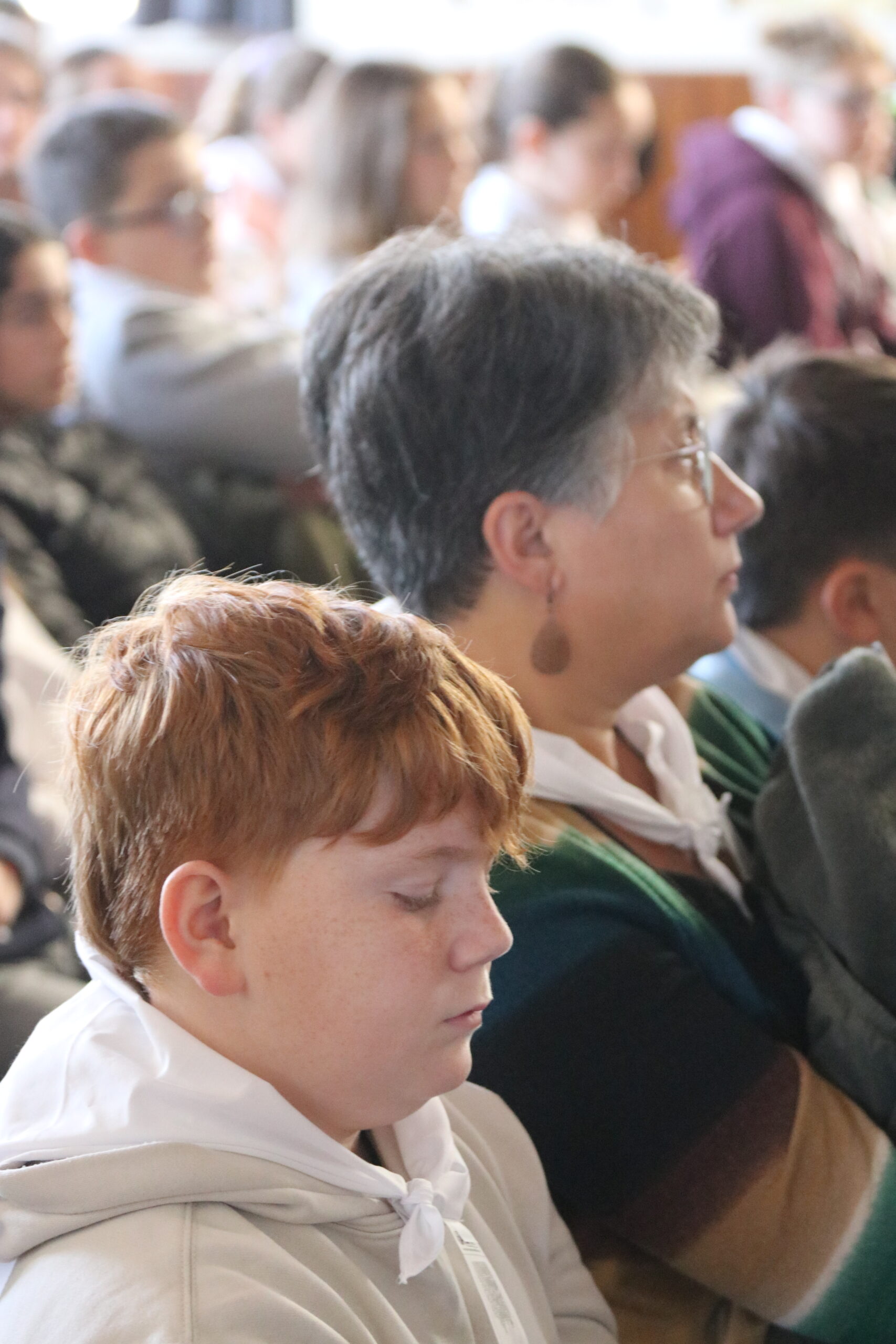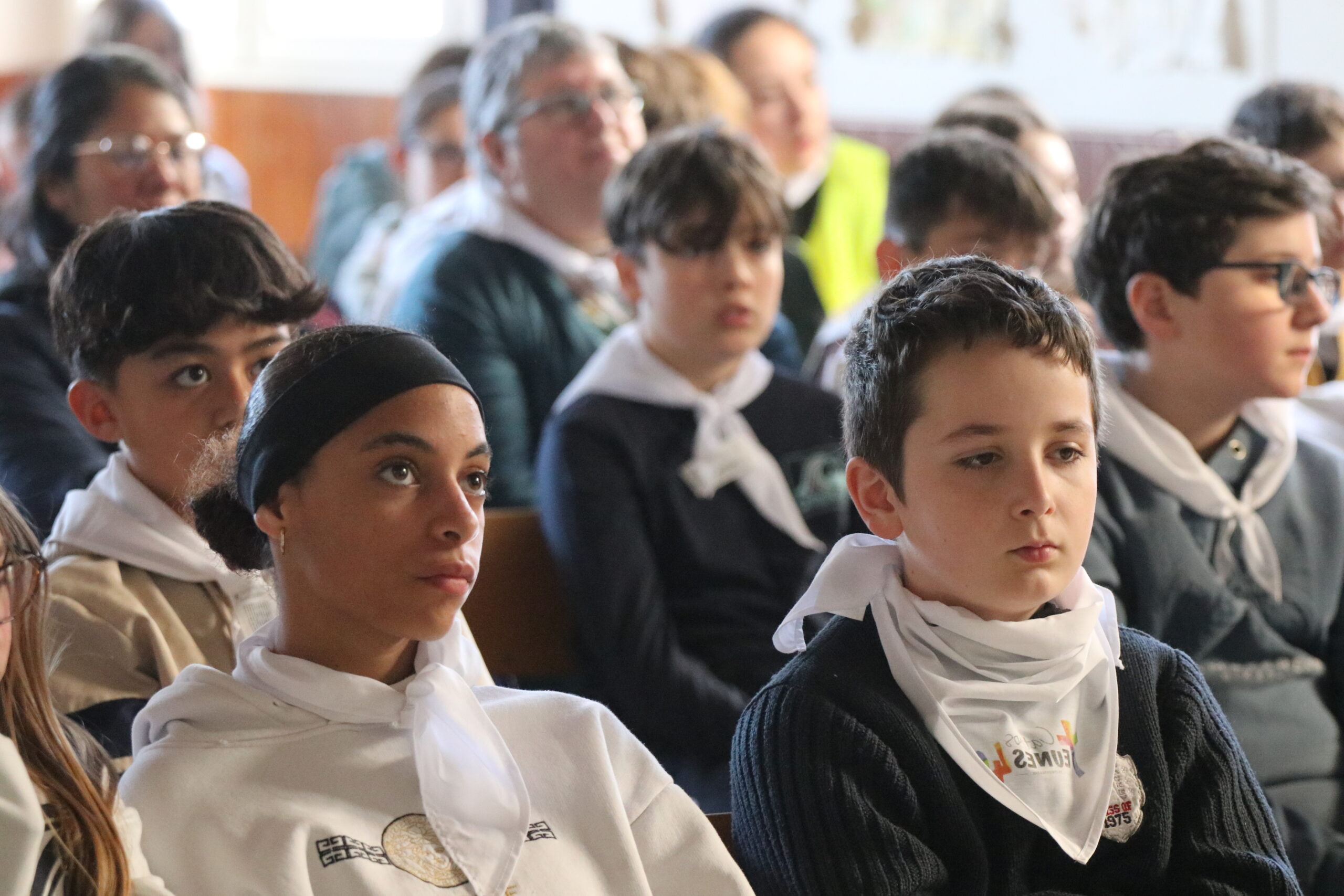 Mais toutes les bonnes choses ont une fin : nous sommes retournés en salle polyvalente pour chanter et danser avant de vivre un premier temps d’échange avec Monseigneur. Pendant 30 minutes, il a répondu à plusieurs questions sur le Credo : le Père, le Fils, le Saint-Esprit et l’Église. (Pour les questions restées sans réponse, un peu de patience : les réponses de Monseigneur Souchu seront prochainement publiées en vidéo sur notre site et nos réseaux sociaux.)