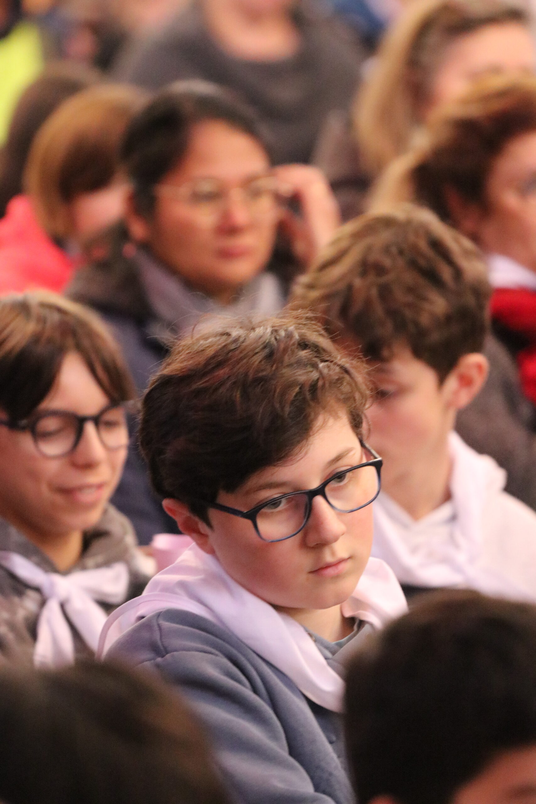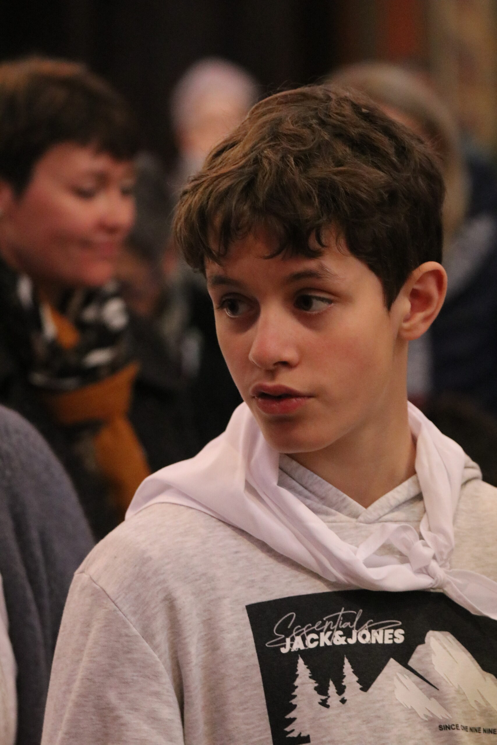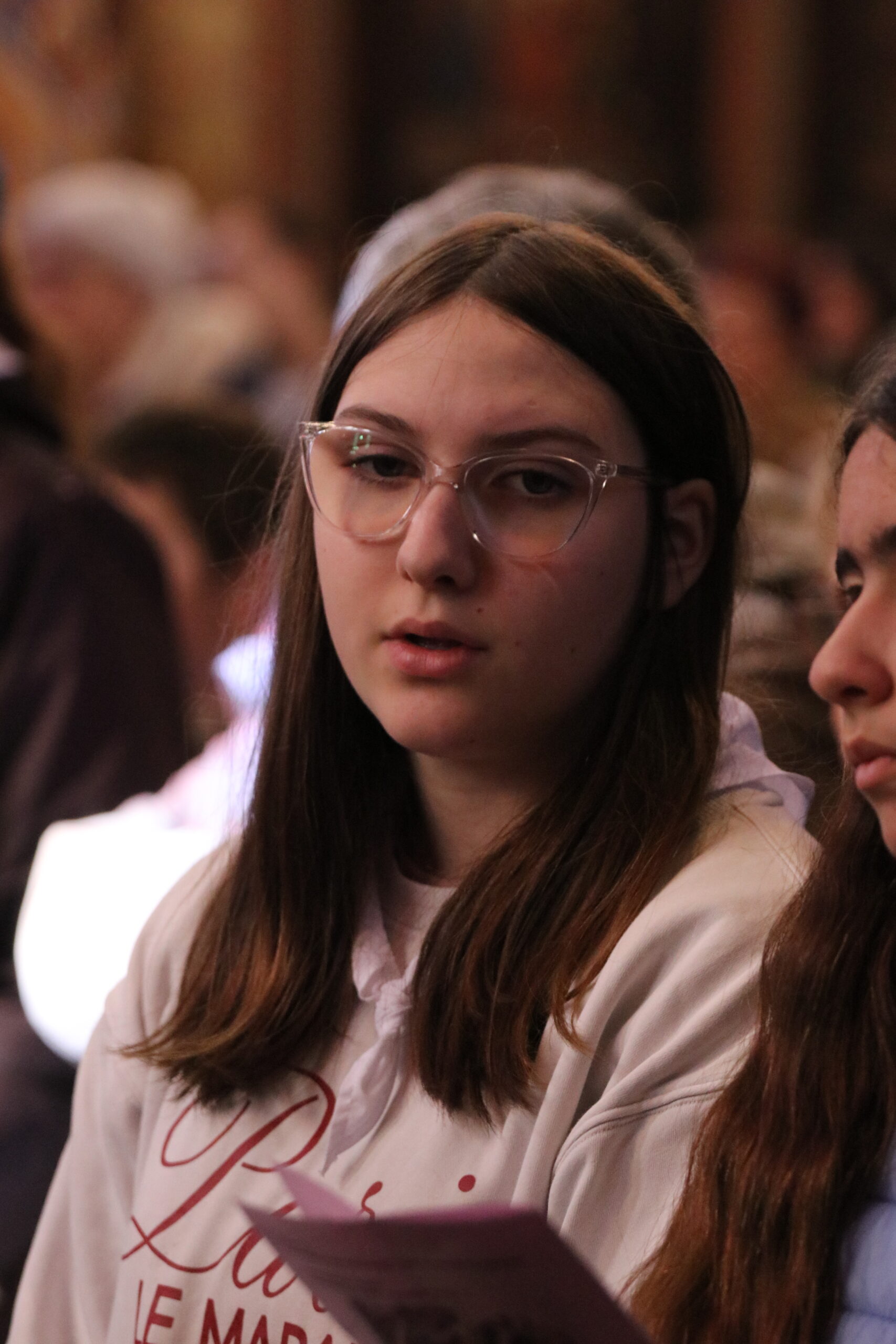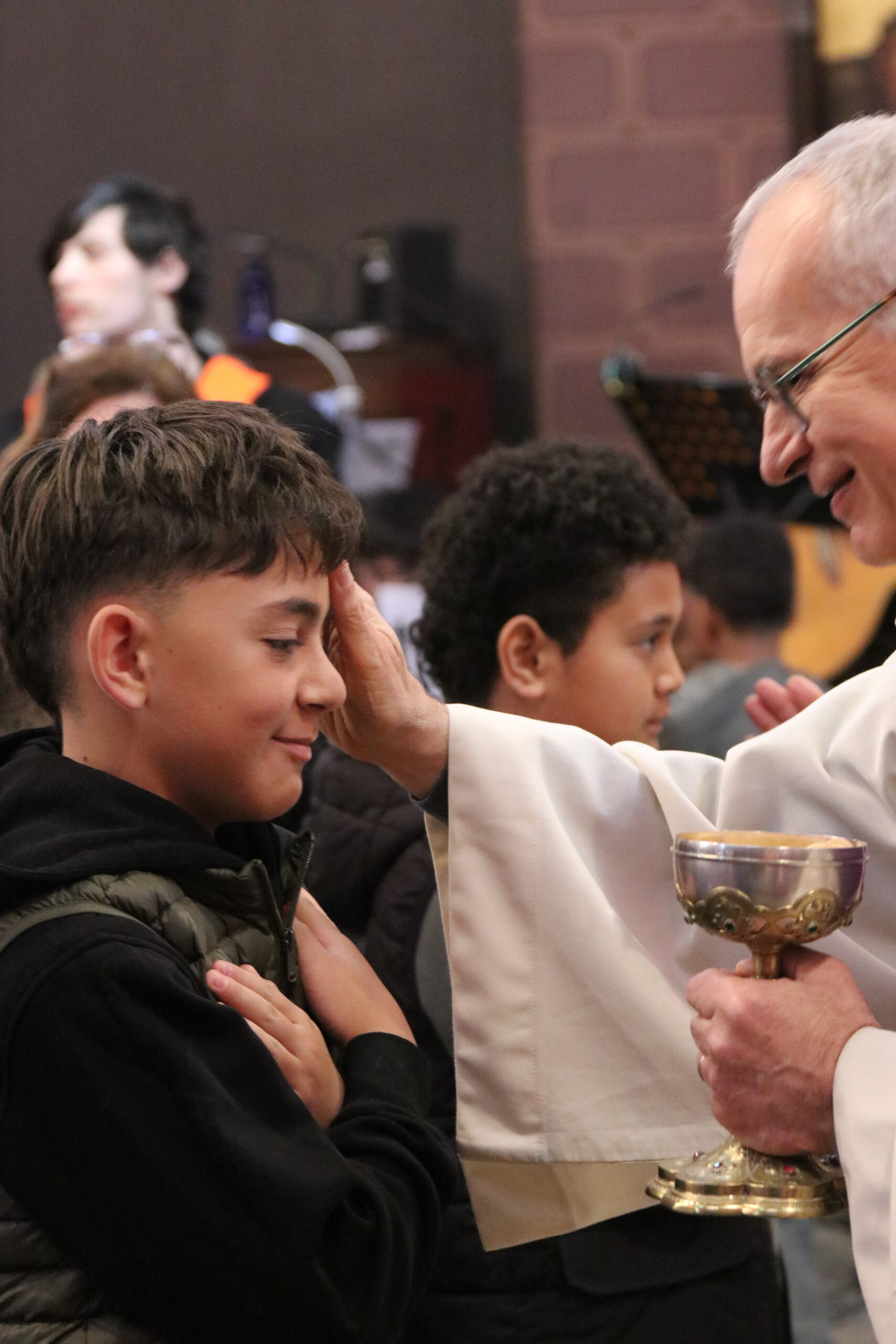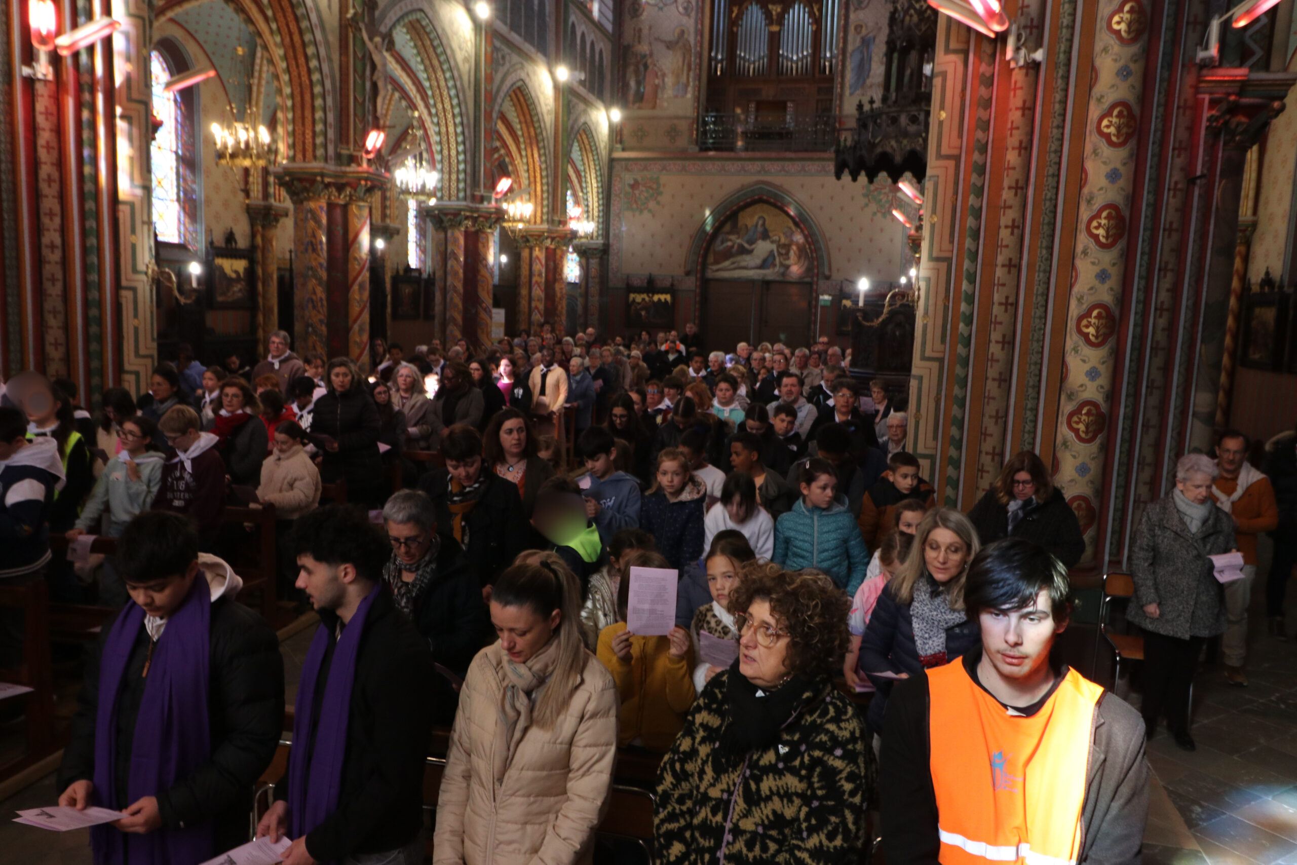 Mais toutes les bonnes choses ont une fin : nous sommes retournés en salle polyvalente pour chanter et danser avant de vivre un premier temps d’échange avec Monseigneur. Pendant 30 minutes, il a répondu à plusieurs questions sur le Credo : le Père, le Fils, le Saint-Esprit et l’Église. (Pour les questions restées sans réponse, un peu de patience : les réponses de Monseigneur Souchu seront prochainement publiées en vidéo sur notre site et nos réseaux sociaux.)