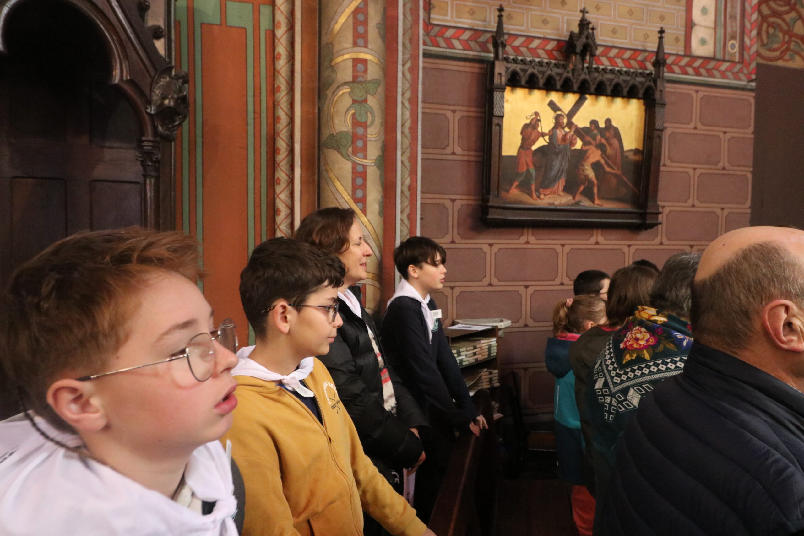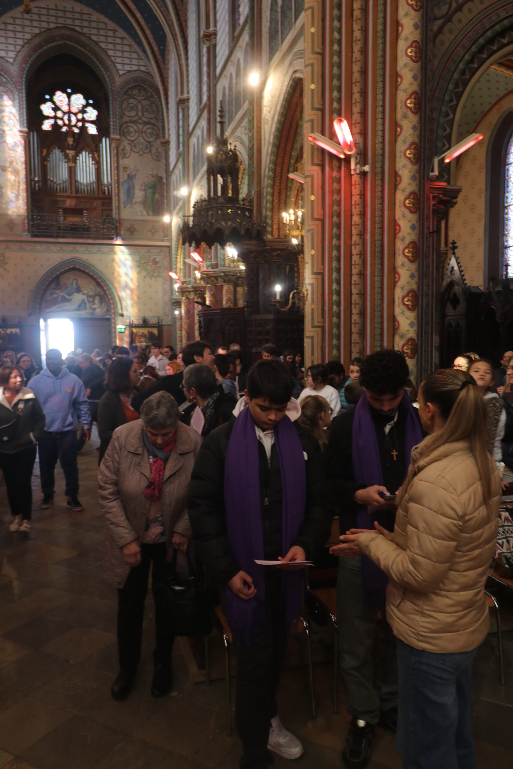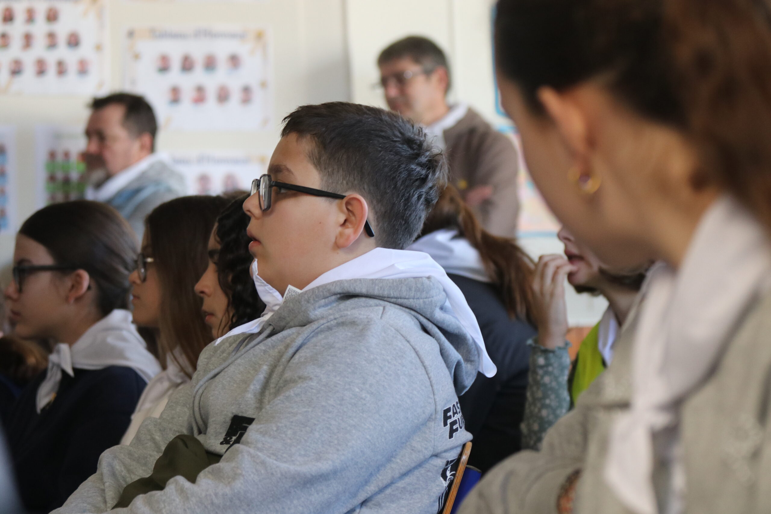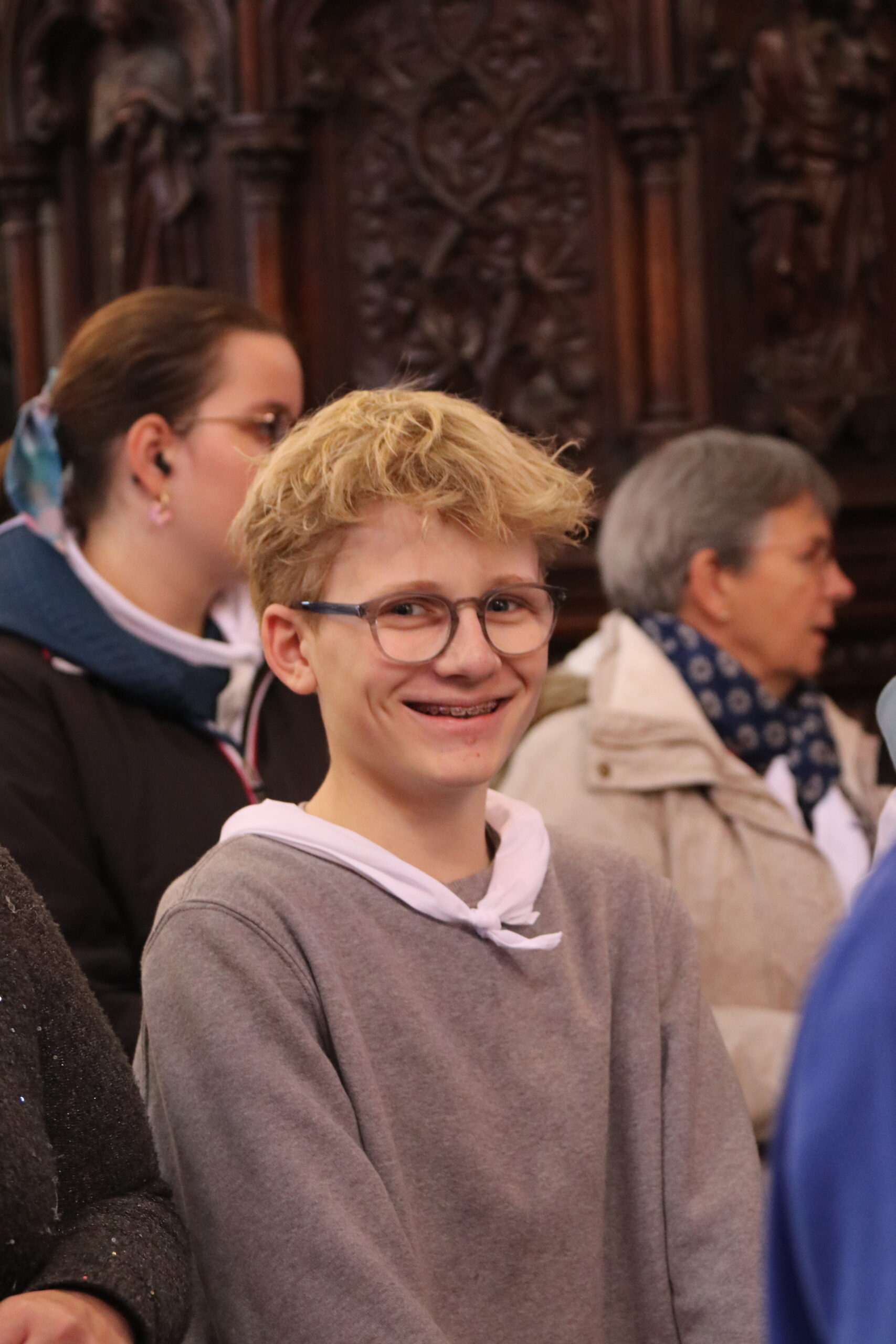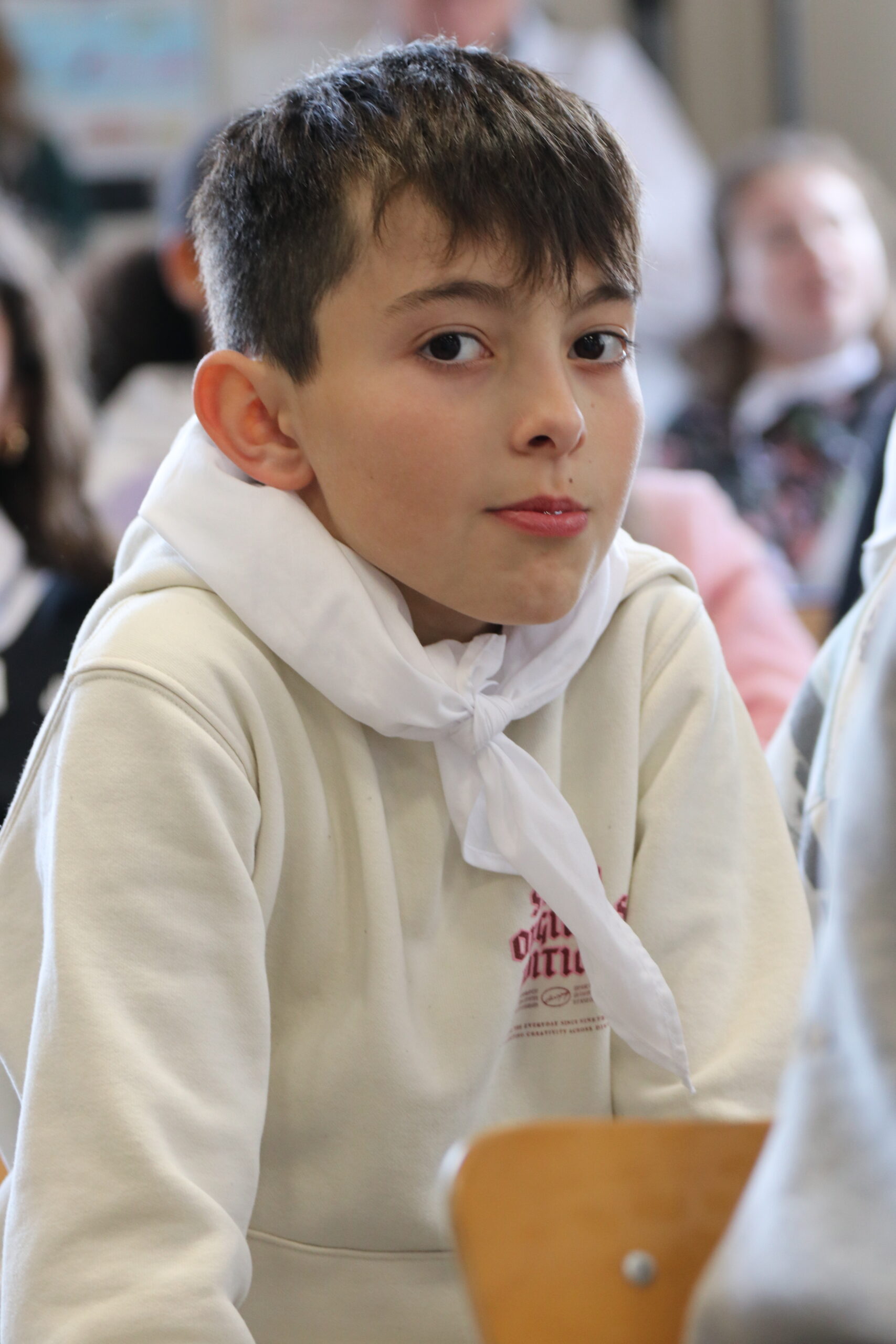 Mais toutes les bonnes choses ont une fin : nous sommes retournés en salle polyvalente pour chanter et danser avant de vivre un premier temps d’échange avec Monseigneur. Pendant 30 minutes, il a répondu à plusieurs questions sur le Credo : le Père, le Fils, le Saint-Esprit et l’Église. (Pour les questions restées sans réponse, un peu de patience : les réponses de Monseigneur Souchu seront prochainement publiées en vidéo sur notre site et nos réseaux sociaux.)