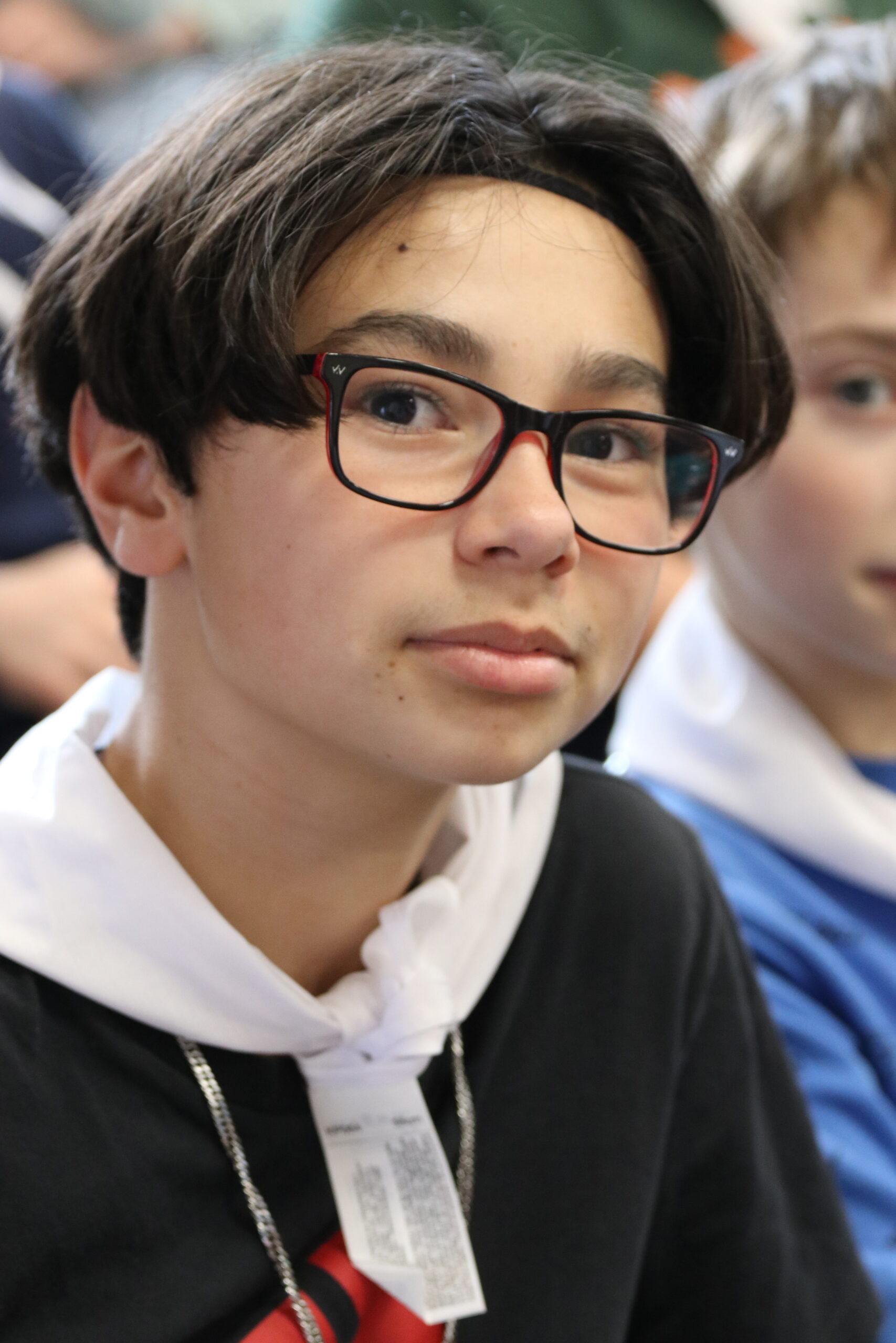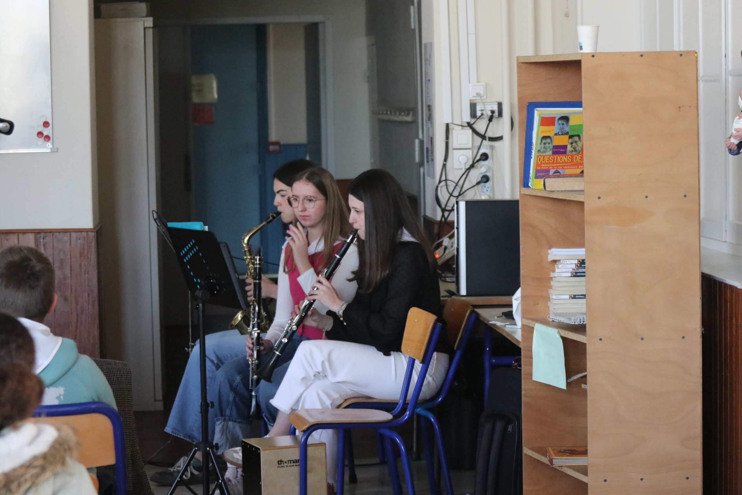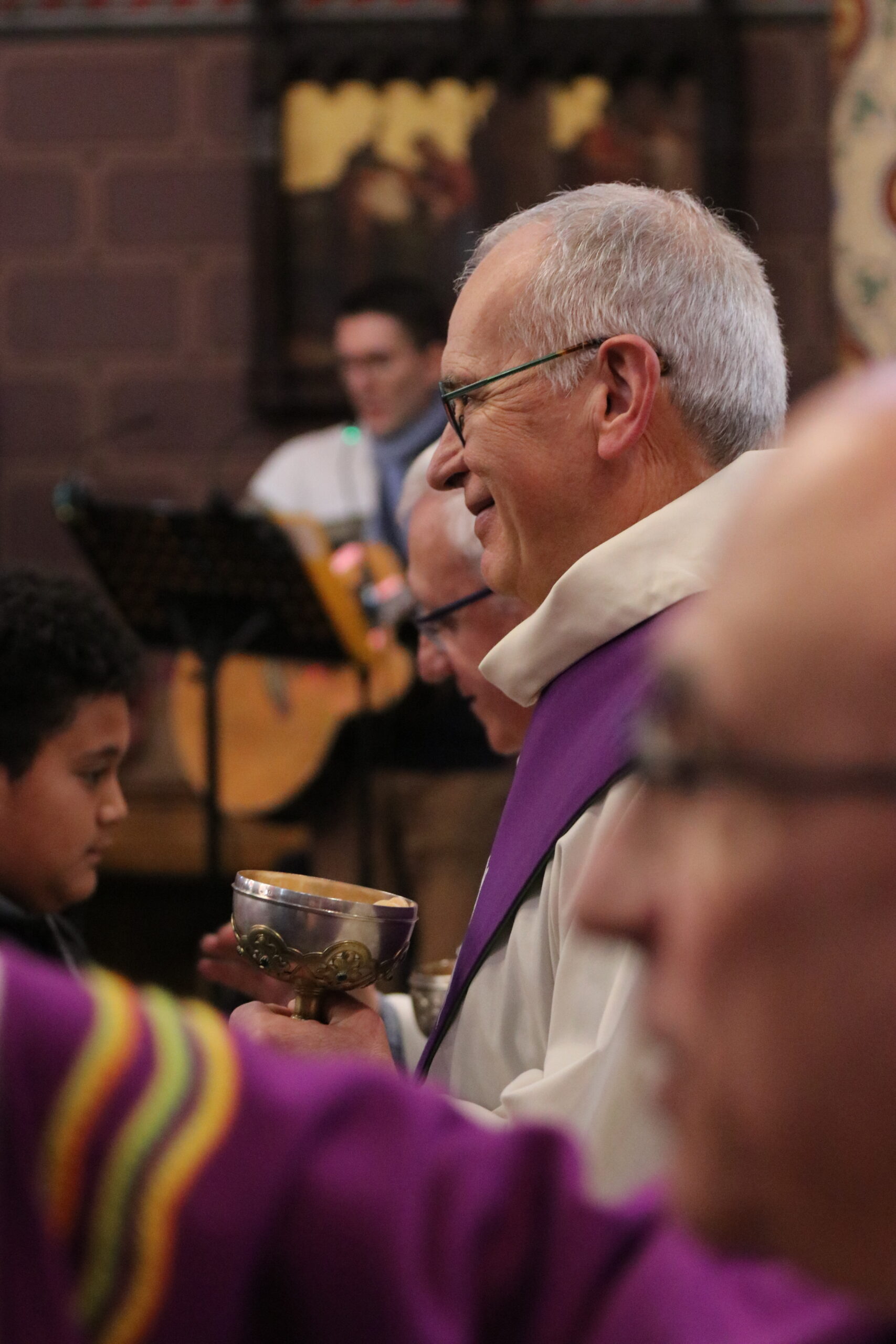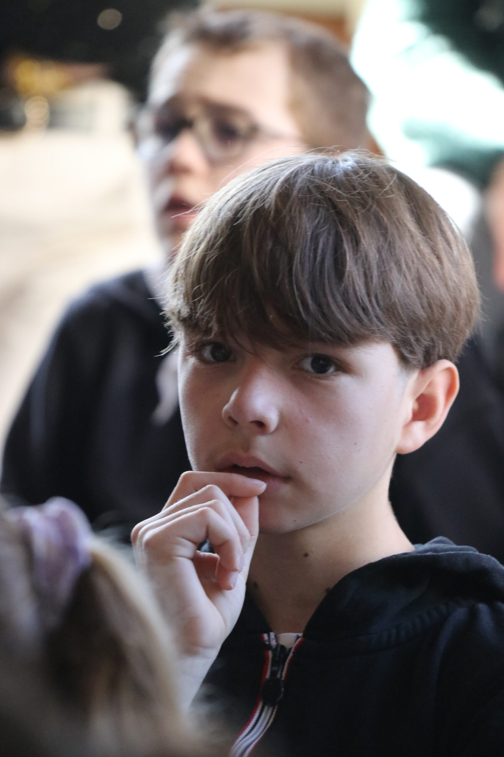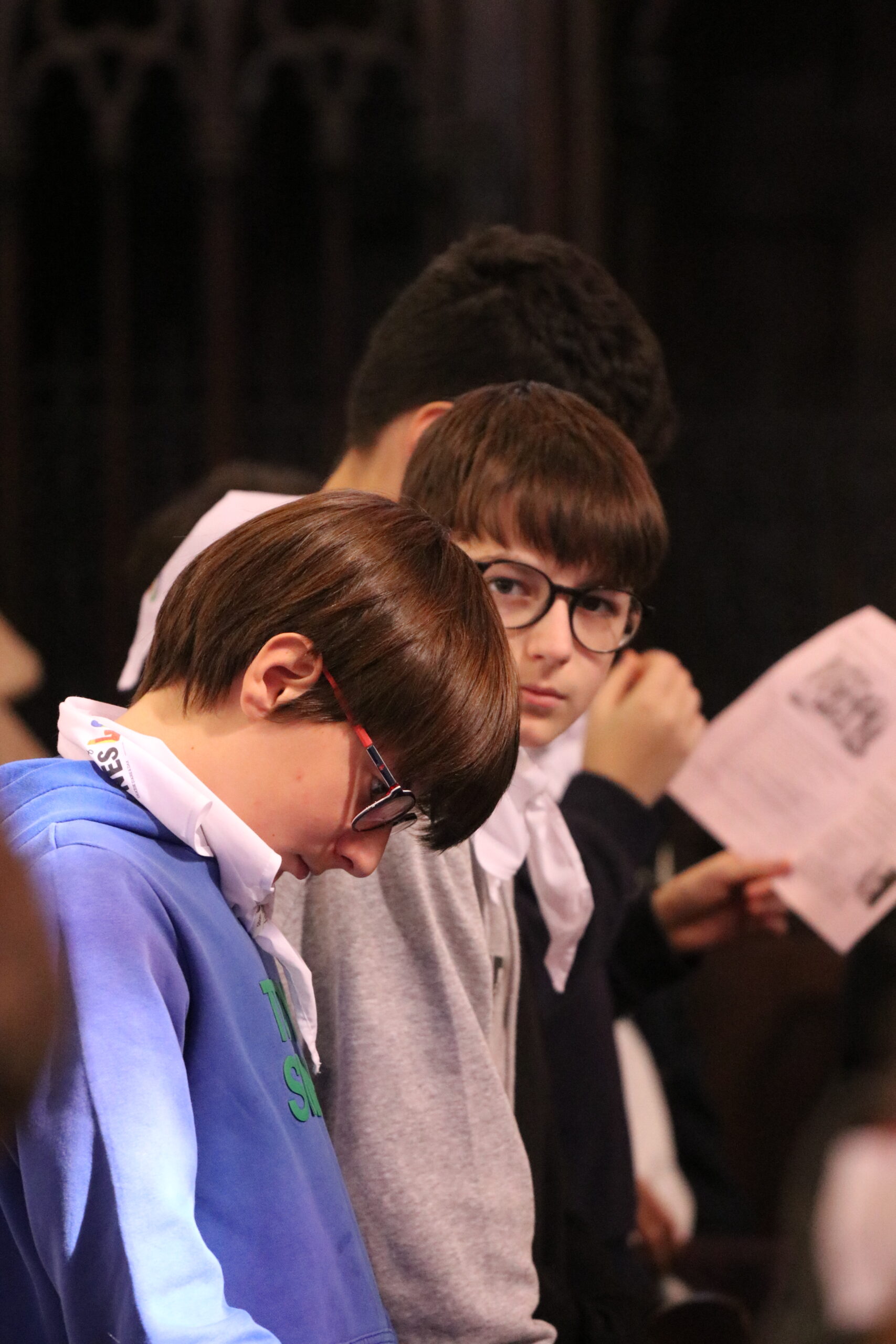 Mais toutes les bonnes choses ont une fin : nous sommes retournés en salle polyvalente pour chanter et danser avant de vivre un premier temps d’échange avec Monseigneur. Pendant 30 minutes, il a répondu à plusieurs questions sur le Credo : le Père, le Fils, le Saint-Esprit et l’Église. (Pour les questions restées sans réponse, un peu de patience : les réponses de Monseigneur Souchu seront prochainement publiées en vidéo sur notre site et nos réseaux sociaux.)