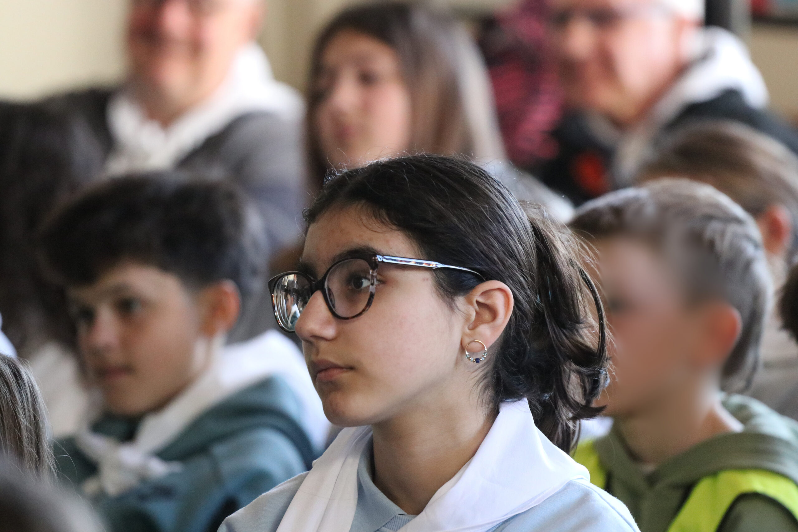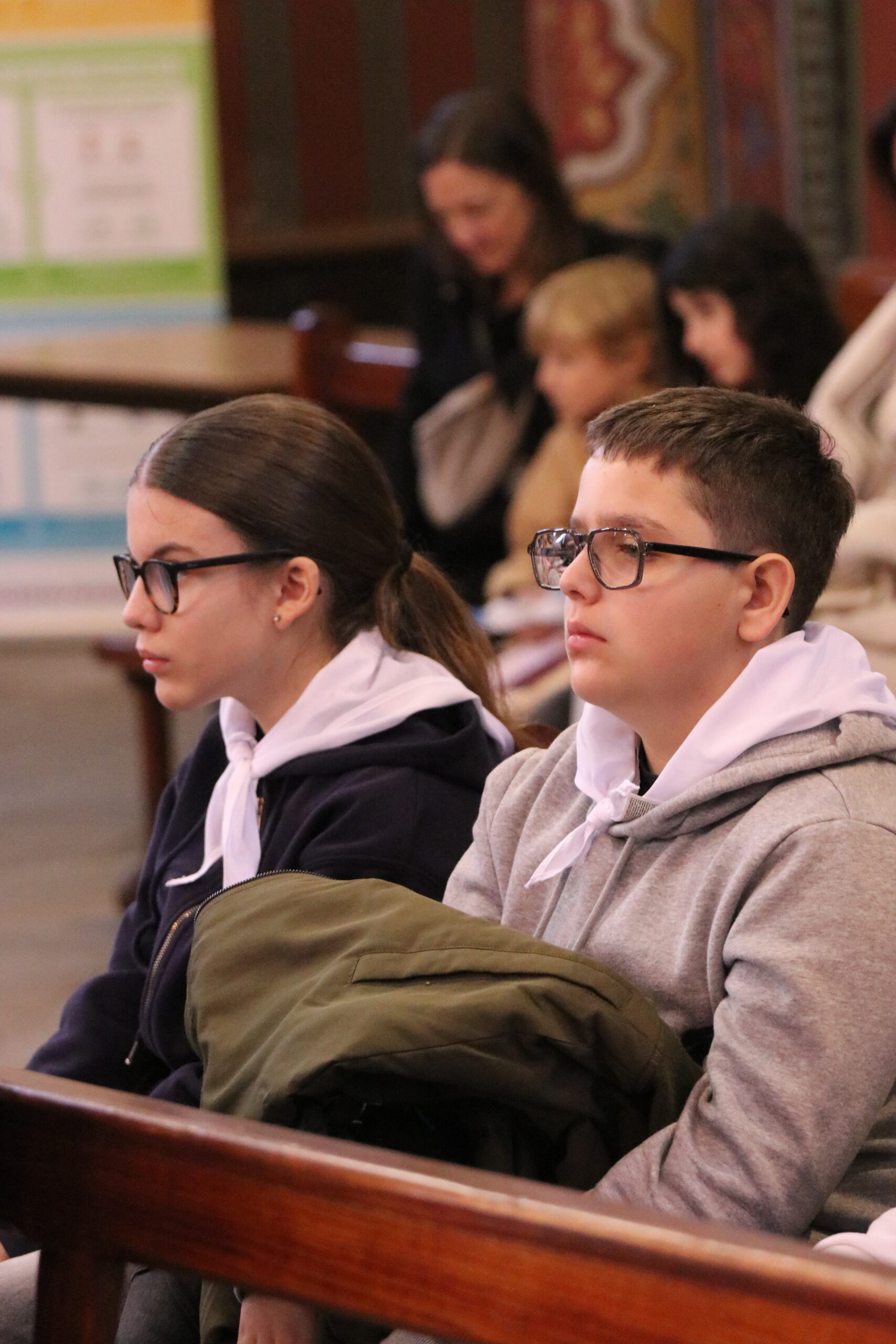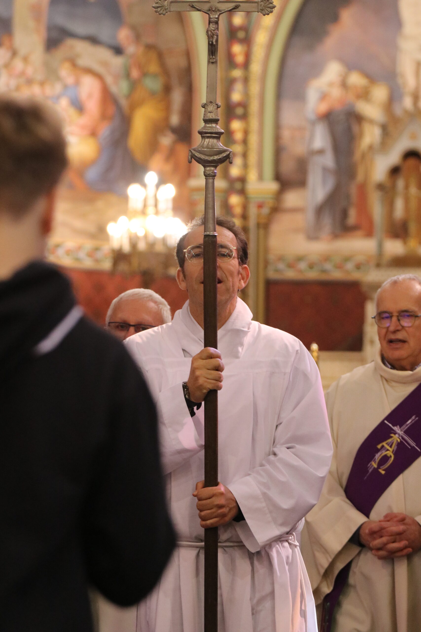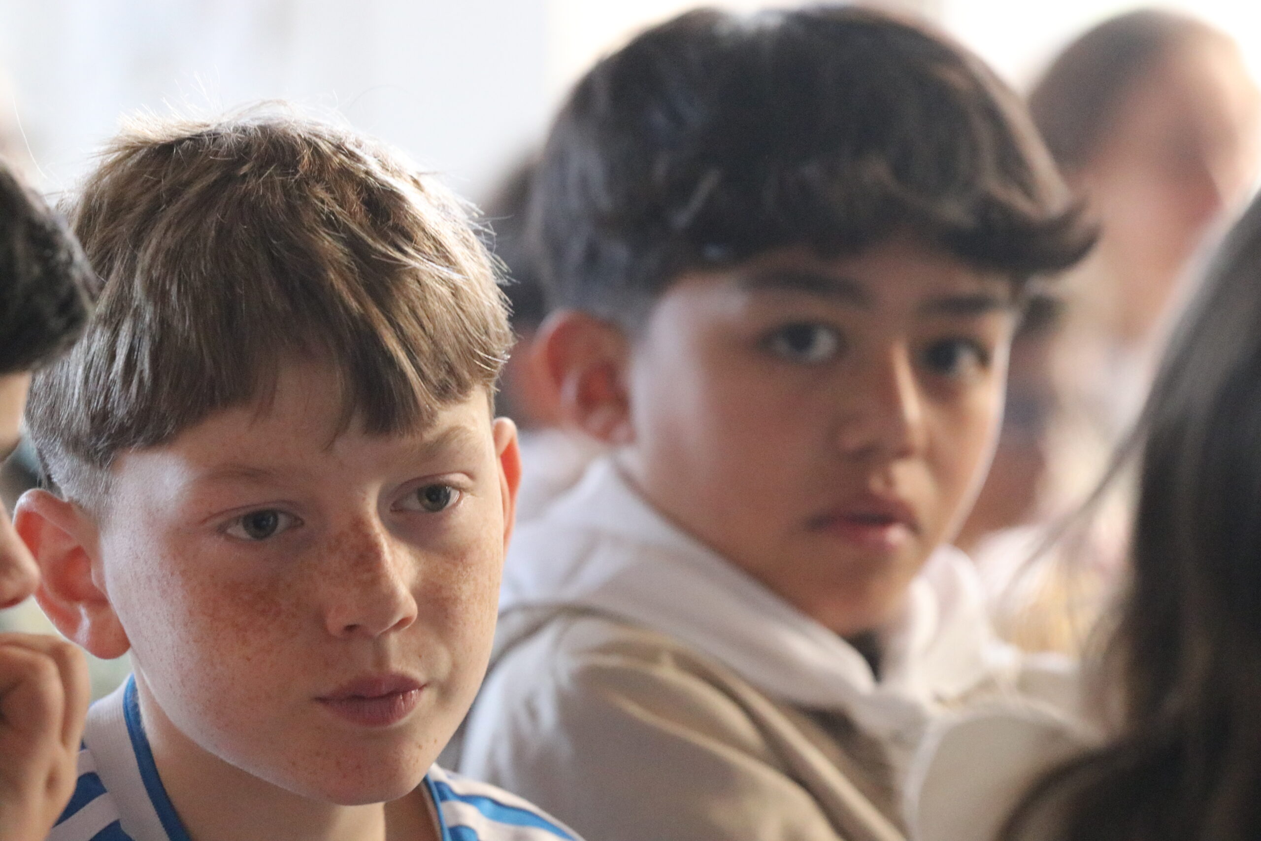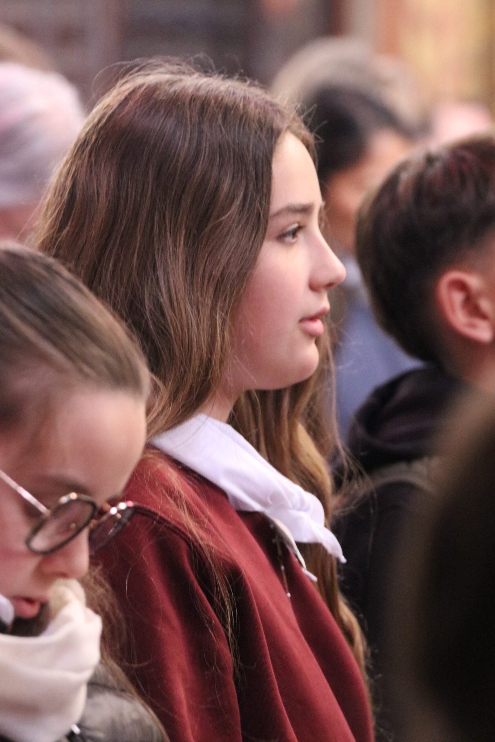 Mais toutes les bonnes choses ont une fin : nous sommes retournés en salle polyvalente pour chanter et danser avant de vivre un premier temps d’échange avec Monseigneur. Pendant 30 minutes, il a répondu à plusieurs questions sur le Credo : le Père, le Fils, le Saint-Esprit et l’Église. (Pour les questions restées sans réponse, un peu de patience : les réponses de Monseigneur Souchu seront prochainement publiées en vidéo sur notre site et nos réseaux sociaux.)