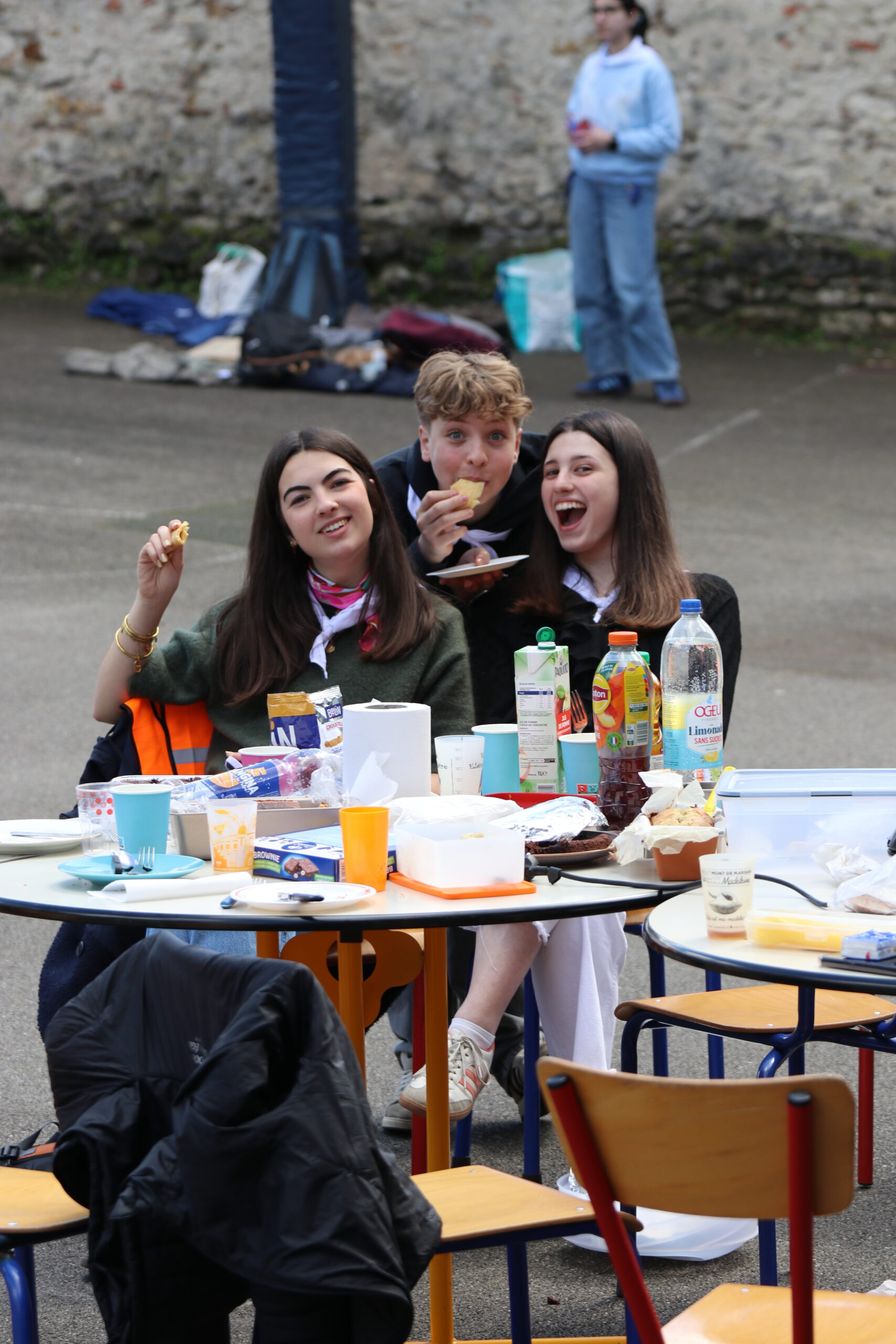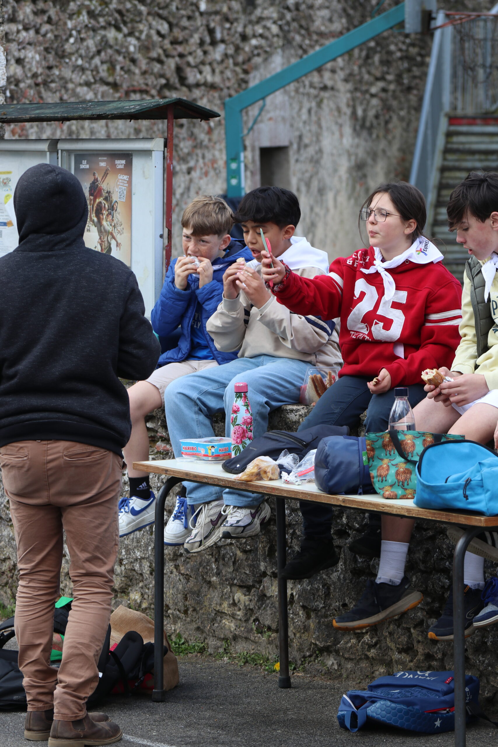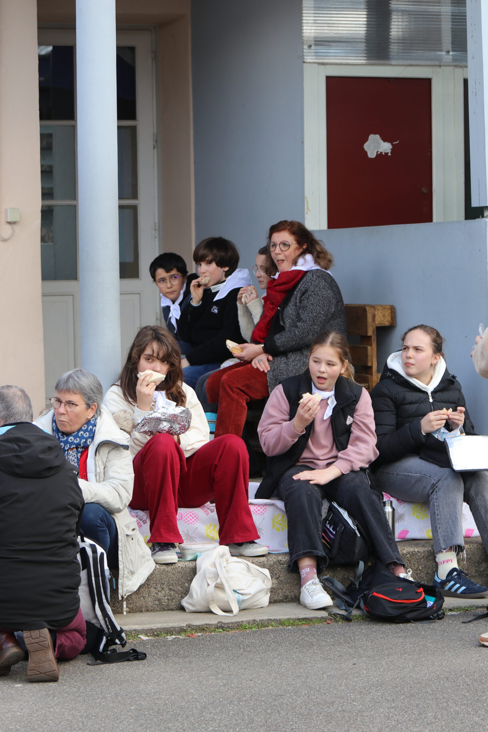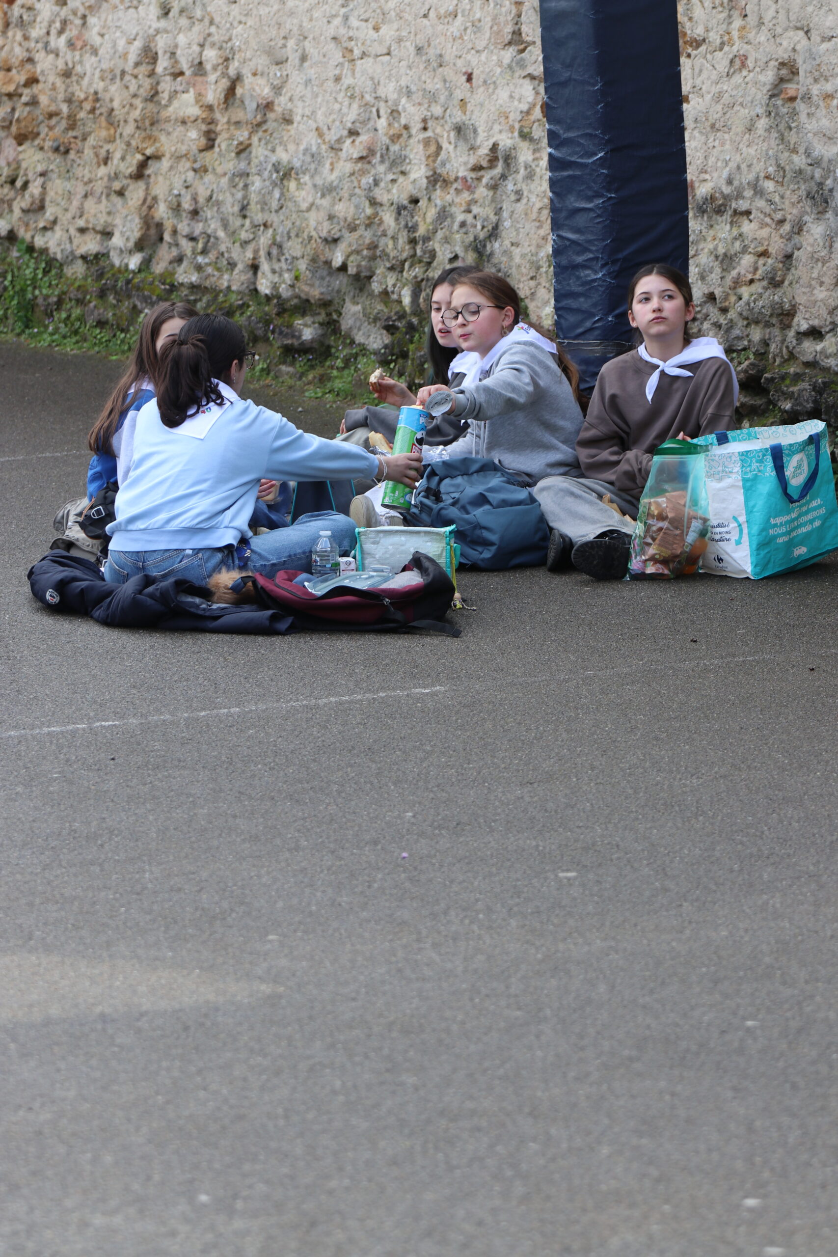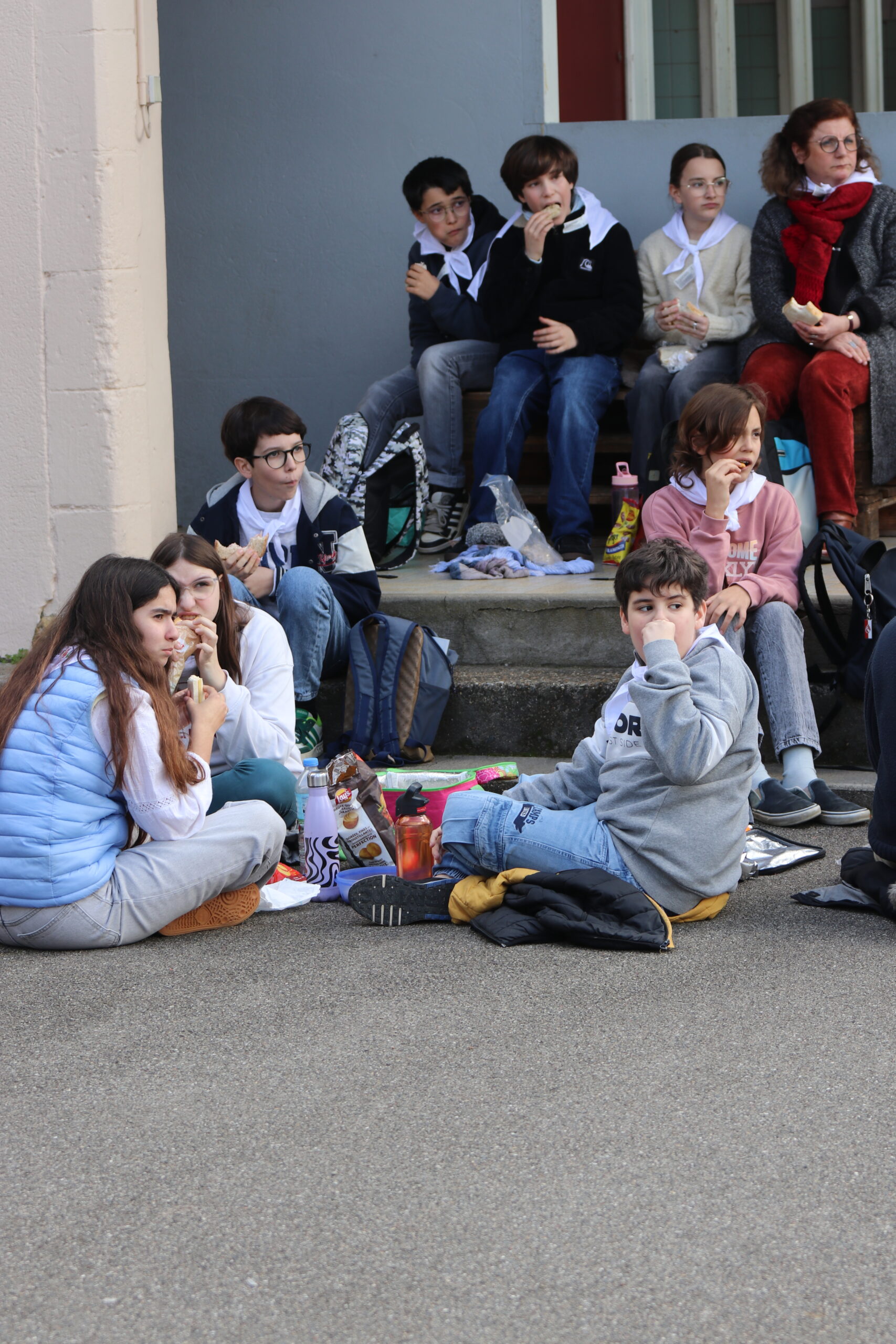 Suite à cette belle messe , l’heure du repas est arrivée. Les jeunes sont allés récupérer leurs sacs avant de s’installer au soleil pour partager leur pique-nique et profiter d’un temps très agréable, propice à quelques séances de bronzage pour certains.
